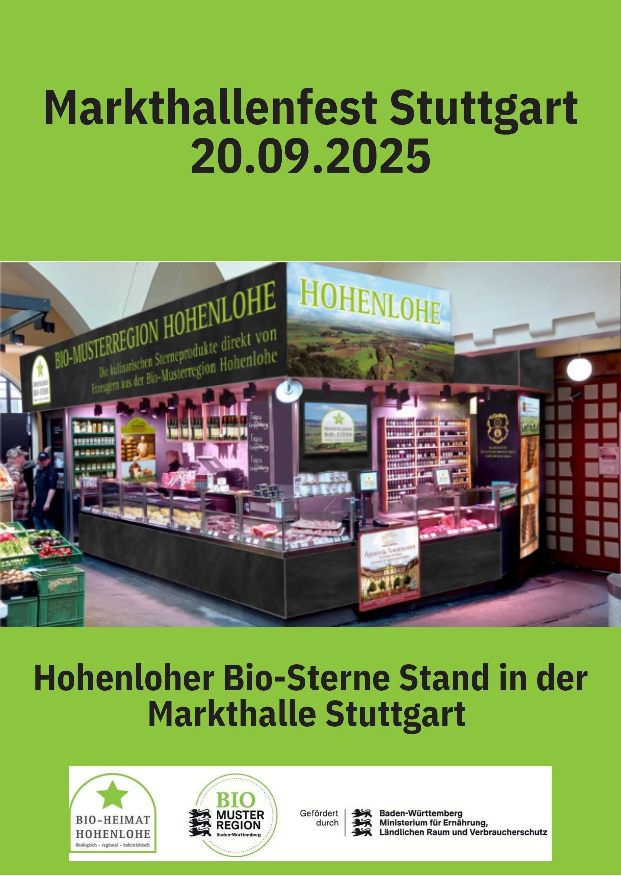 Seid kurzen ist die Bio-Musterregion Hohenlohe mit Ihren Bio-Sternen Produkten in der Markthalle in Stuttgart vertreten.